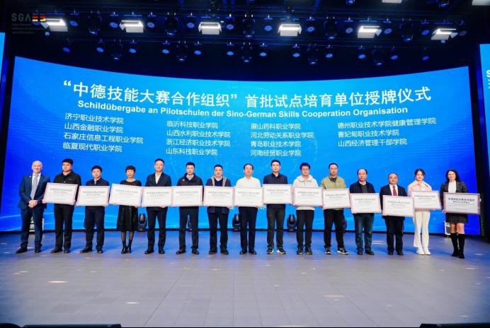 会上,我校被授予“中德技能大赛合作组织”首批试点培育单位和“中德智慧康养产业学院”试点培育单位。