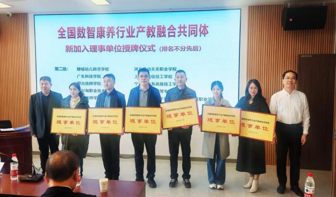 同时,我校成为全国数智康养行业产教融合共同体理事单位,王英博为新加入全国数智康养行业产教融合共同体的理事单位授牌。