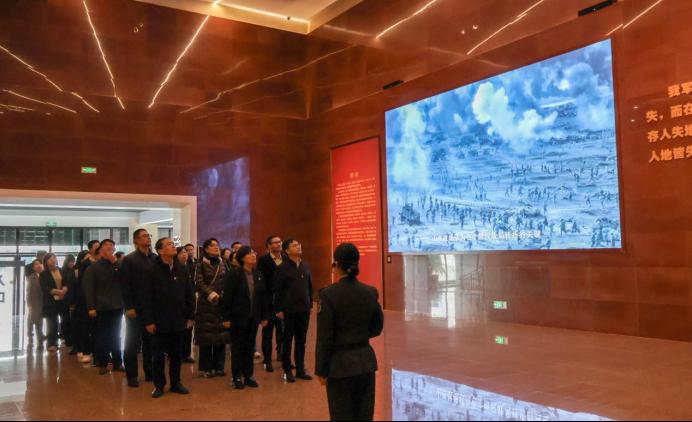 全体党员进入莱芜战役展览馆参观,铜制的军号铭记着战士们冲锋陷阵的呐喊,立体沙盘生动再现了精妙的战术布局,红绸覆盖的土枪见证了信仰的力量与对话。莱芜战役展览馆利用图片、实物、沉浸式场景、大型雕塑、简笔画和声光电等现代展示方式,客观真实地记录和再现了莱芜战役的历史进程、革命前辈英勇的战斗精神。