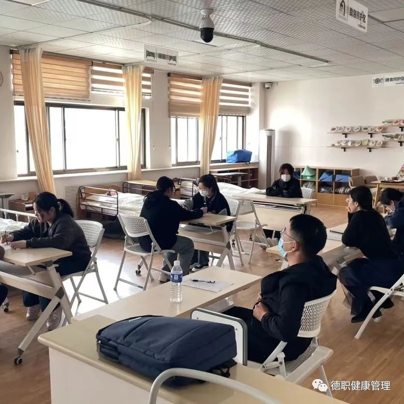 此次考试项目为现场协助卧床老年人穿脱衣训练;为行动受限的老人进行口腔护理;老年人能力评估;心肺复苏及婴幼儿心肺复苏;婴幼儿抚触操作;血压测定;体温测定。考生根据考题内容,在规定时间内完成考核项目,考试过程中借助临床真实案例、模拟病人及标准器材,综合考评员工的操作能力、思维判断、交流沟通和人文关怀等多项能力。操作完毕,监考老师对考生理论基础、操作水平、沟通技巧等方面综合评价,进行打分。每个场地设置3名裁判,负责竞赛当天的评判和打分。
