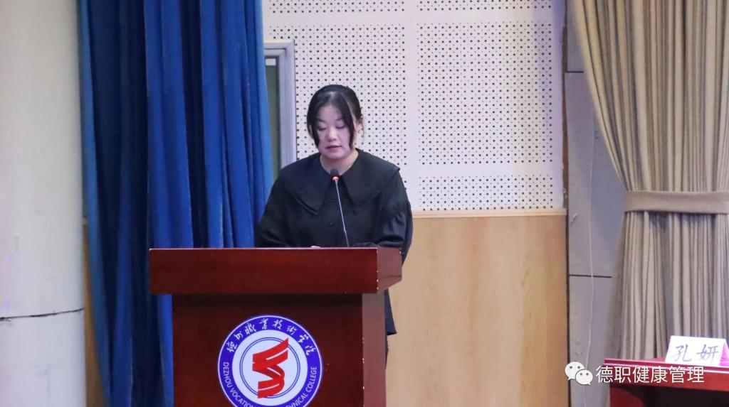接着,新生辅导员代表孔妍老师发言,她希望同学们拥有阳光的心态,主动融入学习生活,以坚如磐石的理想信念、昂扬向上的精神风貌、奋发有为的实干担当迎接新的挑战,奏响新的青春之歌。