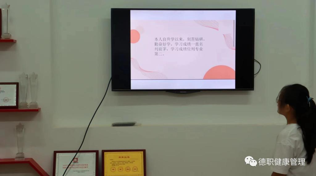 参加此次答辩的同学通过PPT依次从学业情况、社会实践、志愿服务、科研大创等方面展示自我,以优秀的成绩完成每一科的考核的同时,还积极参加了各项活动和各种比赛,并且斩获了多项奖状取得了不俗的成绩,过程中他们条理清晰、表达流畅,尽显一名优秀大员工的综合素质与水平,赢得现场评委老师和同学阵阵掌声,也彰显了健康学子勤奋好学、刻苦钻研的卓越风采。