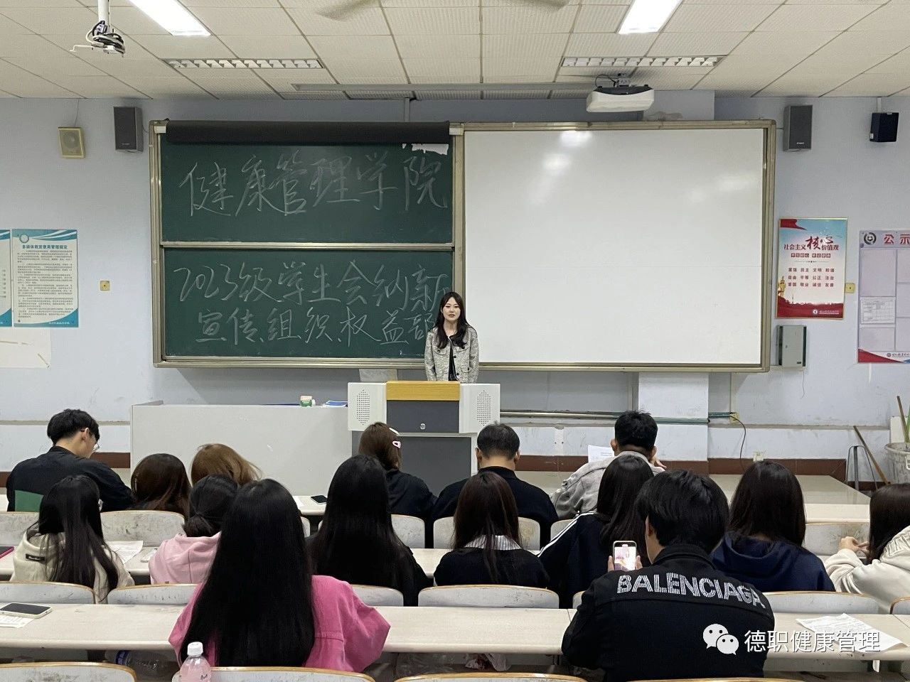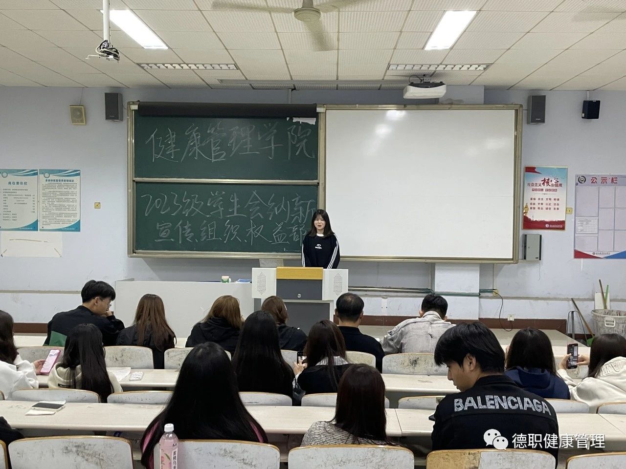 面试过程中,同学们都积极踊跃地站在台前,对自己想加入的部门以及自身特长、未来工作的目标和规划等各方面进行陈述。他们自信大方,侃侃而谈,表达了努力做好竞选岗位工作的信心和决心。同时,面对学长学姐提出的各种问题,也毫不怯场,从容淡定,大方得体地说出自己的想法,言谈举止中无不流露出对员工会工作的真挚渴望和积极进取的蓬勃朝气。