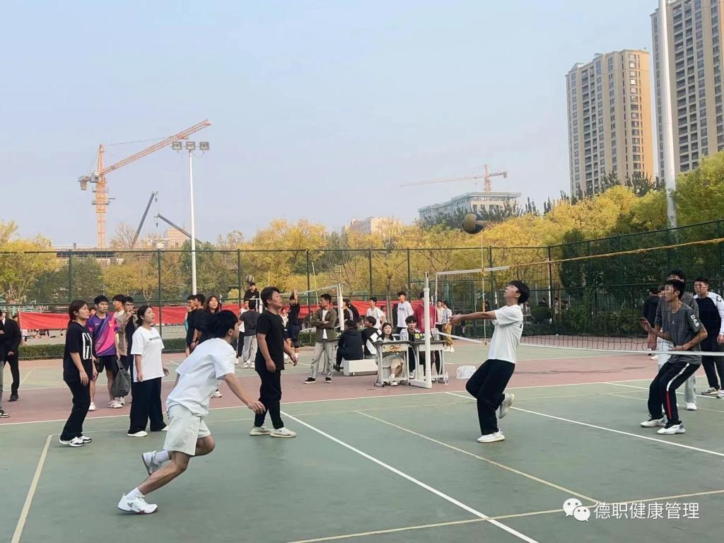 一声哨响之后,同学们各展风采,相互配合。发球,起跳,拦网,扣球。我系选手奋力拼搏,每球必争,一接二接三扣不断上演,比赛高潮迭起,观众的欢呼声、助威声此起彼伏,响彻整个赛场。