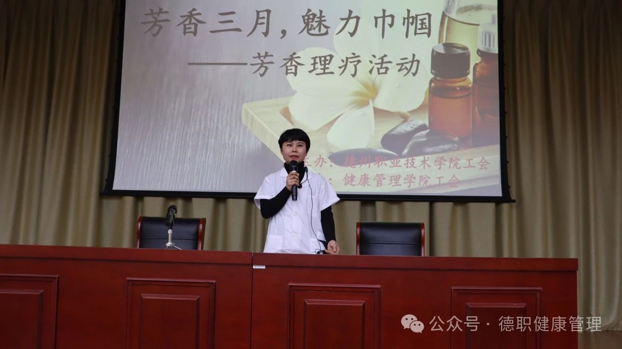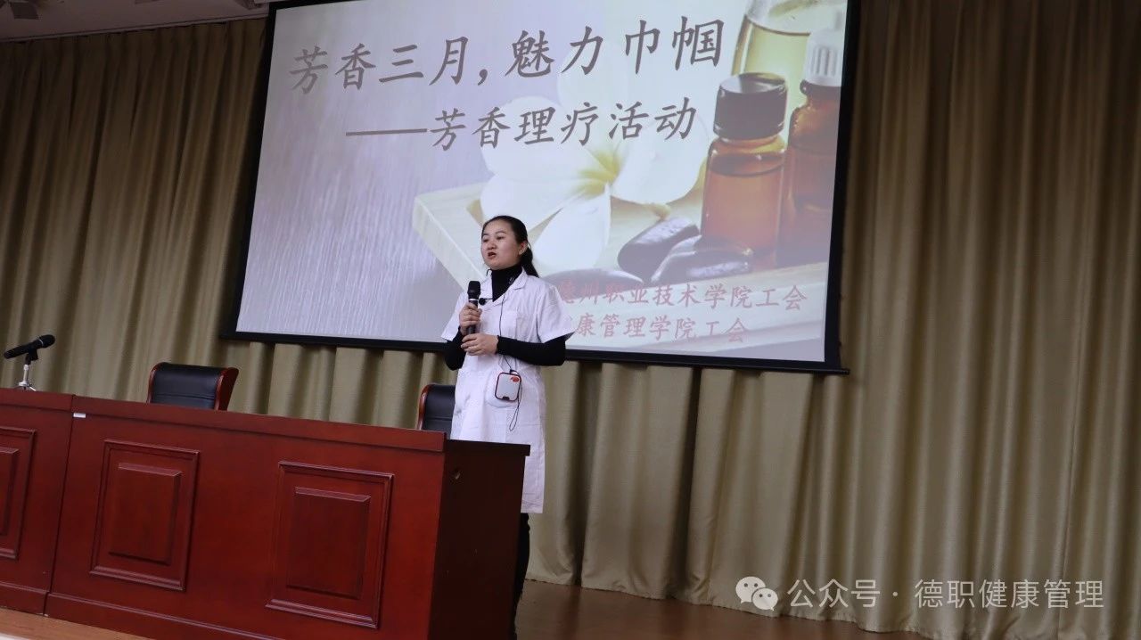 芳香理疗是我校庆祝“三八”妇女节的一种独特方式,它不仅强调女性的重要性和价值,还通过提供身心放松和愉悦的体验来关爱和呵护女性。该活动不仅有助于提升女性的幸福感和生活质量,也促进了社会对女性权益和健康的重视。
