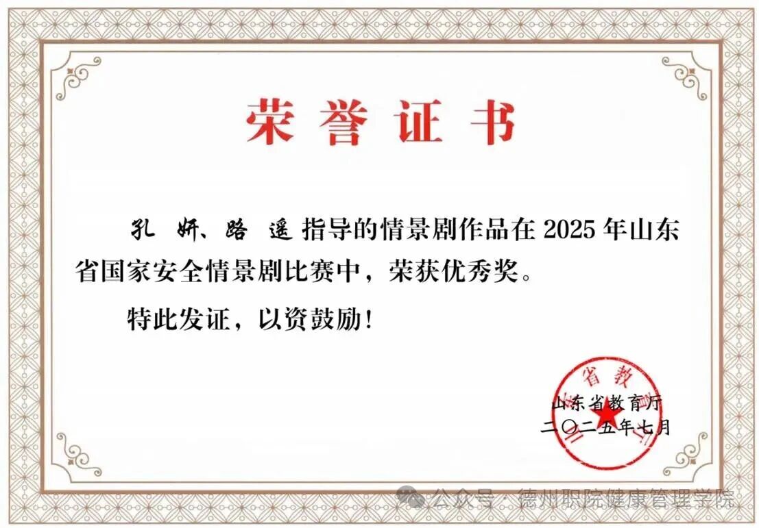 由孔妍、路遥老师指导,扈佳琳、孙洪萌、王乐、徐加政、王佳旺、朱宝灿同学共同创作的情景剧作品《守护》,在2025年山东省国家安全情景剧比赛中表现突出,荣获优秀奖。该作品以生动形式诠释国家安全内涵,展现了师生们的创新与实践能力。