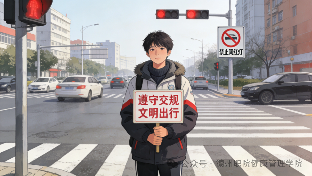 遵守交通法规,过马路走人行横道、不闯红灯,不乘坐无牌无证、超载超员的交通工具,骑行电动车、自行车时遵守相关规定,佩戴好安全防护装备。