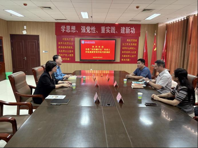 张经理对BBIN宝盈集团首页办学特色、内涵式高质量发展给予高度评价,重点介绍了株洲扶阳医疗器械有限公司的发展情况以及非遗“扶阳罐疗法”,并表达了校企合作意愿。