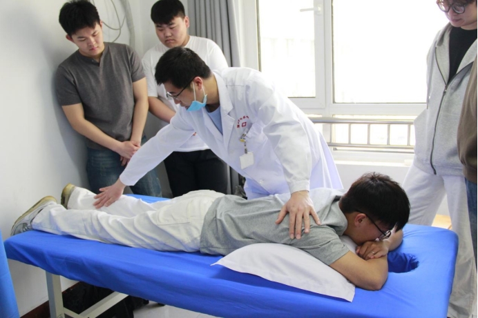 作为学院实践育人基地,德州市中医院在员工生活区投资建设了建筑面积562平方米的综合内科门诊。该门诊集内科诊疗与中医药适宜技术于一体,可提供静脉输液、西药与中药汤剂开具、理疗,以及针灸、推拿、灸法等10余种特色中医适宜技术服务。每周一、周五,医院医师会定期在门诊开展“开课授徒”活动,向师生系统传授推拿、拔罐、刮痧、耳穴、艾灸等中医保健技术,截至目前受益师生已超4000人次。