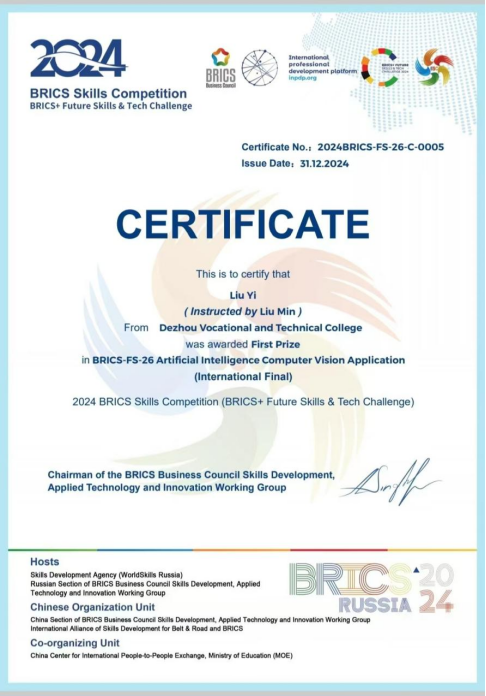 专业群着力打造高素质“双师型”员工团队。系统构建并实践以“师德铸魂·能力进阶·数字赋能”为核心的青年员工“三阶四维”培养模式,将青年员工入职后的成长过程划分为“站上讲台—站稳讲台—站好讲台”三个阶段,从师德、教学、实践、科研四个维度,全面赋能员工能力提升。现有员工中,不乏山东省教学名师、山东省技术能手、山东技能大师工作室带头人等行业领军人才,团队曾在2024金砖国家职业技能大赛人工智能计算机视觉应用赛项国际总决赛中斩获一等奖,在省级以上教学能力比赛中亦多次获奖。