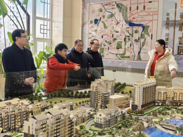 走访现场,实习员工代表黄傲带领大家参观了泰和·睿园的沙盘,健康调理区、品质住宿区、老年人娱乐活动区等。